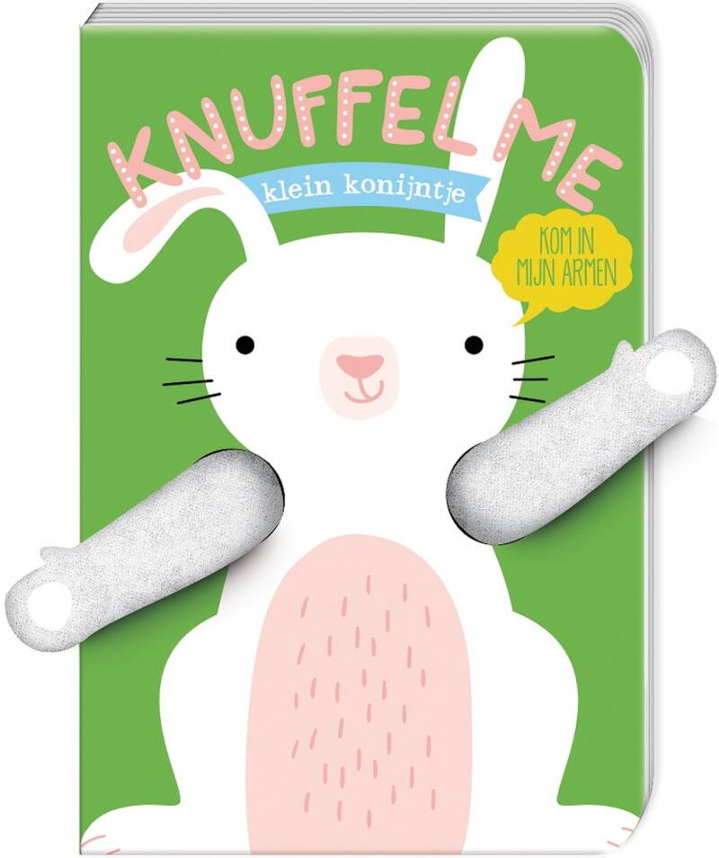 Het konijn knuffelt je echt met zijn zachte armpjes! Lief boek om voor te lezen aan je kind.